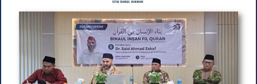 BEKASI – Dalam upaya memperdalam pemahaman spiritual dan intelektual civitas akademika, STIU Darul Hikmah sukses menyelenggarakan Kuliah Umum bertajuk “Binaul Insan fil Qur’an” pada Kamis, 9 April 2026. Acara yang bertepatan dengan 20 Syawal 1447 H ini dilaksanakan secara khidmat di Aula STIU DH Lantai 2 mulai pukul 13.00 hingga 15.00 WIB.