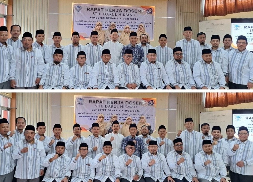 BEKASI – Sekolah Tinggi Ilmu Ushuluddin (STIU) Darul Hikmah menyelenggarakan Rapat Kerja Dosen untuk menyambut Semester Genap Tahun Akademik 2025-2026 pada Senin (19/01/2026). Acara yang berlangsung di kampus STIU Darul Hikmah ini dihadiri oleh jajaran pimpinan, staf prodi, serta para dosen di lingkungan kampus.